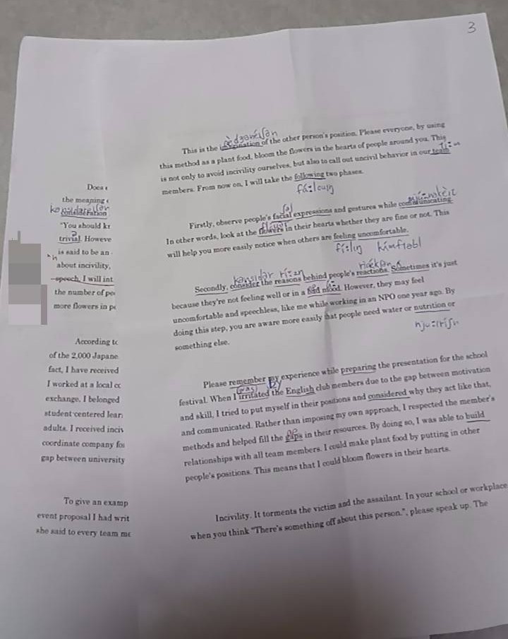 川田さんは「Nurturing the flowers in someone’s heart.」というタイトルでスピーチを行い、「インシビリティというのは相手への悪意はないものの、配慮や思いやりの欠けた言動を指します。インシビリティは、加害者の罪の意識がないことから発生するのだと考え、私は “Plant Food” と名付けた他者への向き合い方をスピーチ内で提唱しました。」とスピーチの内容について話してくれました。
