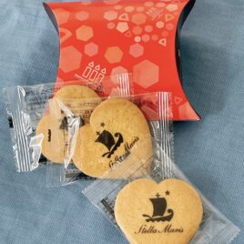 ささやかですが、「ご卒業おめでとう、同窓会へようこそ」の気持ちをたっぷりこめて、海星ロゴマークをプリントした青谷会オリジナルサブレをお渡ししました。