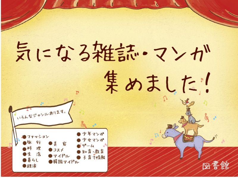 いつも図書館にある雑誌にプラスして、いろんなジャンルの雑誌とマンガを